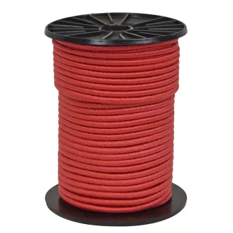 Fune elastica multi-filamento rivestita in tessuto estensibile rosso.