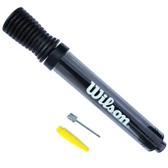 Pompa Wilson a doppia azione, completa di ago per palloni e beccuccio per palle ginniche.