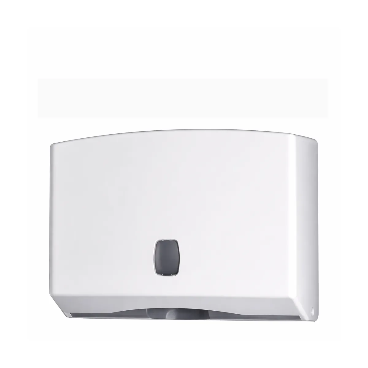Distributore di salviette asciugamani piegate a C o Z con capienza di 200 o 400 fogli, in ABS con base grigia e coperchio bianco, finestrella per il controllo livello carta, dotato di serratura con chiave in plastica.