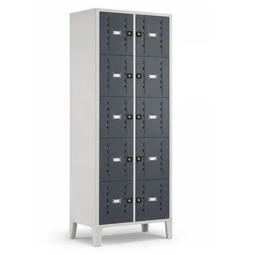 La struttura è organizzata in 10 scomparti ed è pensata per ambienti in cui serve custodire in modo separato effetti personali, accessori o piccoli indumenti, con una profondità maggiore rispetto ai modelli più compatti.