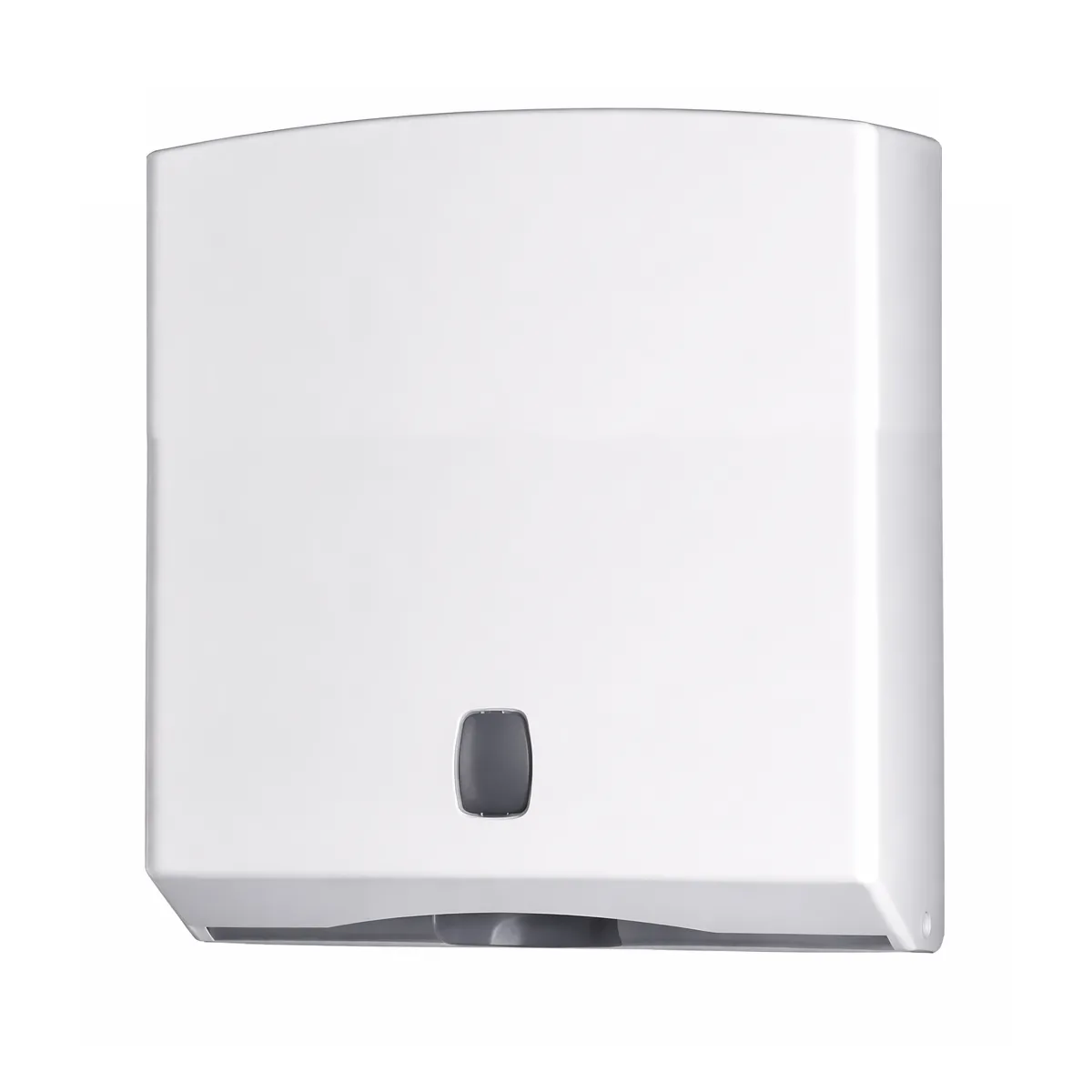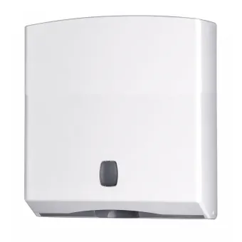 Distributore di salviette asciugamani piegate a C o Z con capienza di 400 fogli, in ABS con base grigia e coperchio bianco, finestrella per il controllo livello carta, dotato di serratura con chiave in plastica.