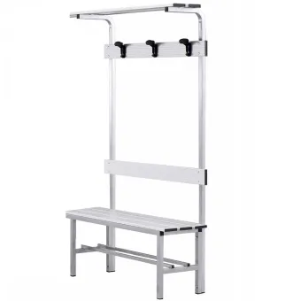 Panca spogliatoio con seduta, schienale appendiabiti e poggiaborse in alluminio
