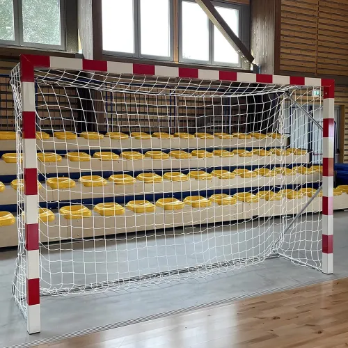 È una soluzione adatta per palestre, impianti sportivi e spazi polivalenti dove occorrono porte regolamentari da pallamano con struttura trasportabile