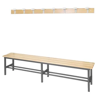 Panchina spogliatoio in acciaio 2 mt con appendiabiti a muro