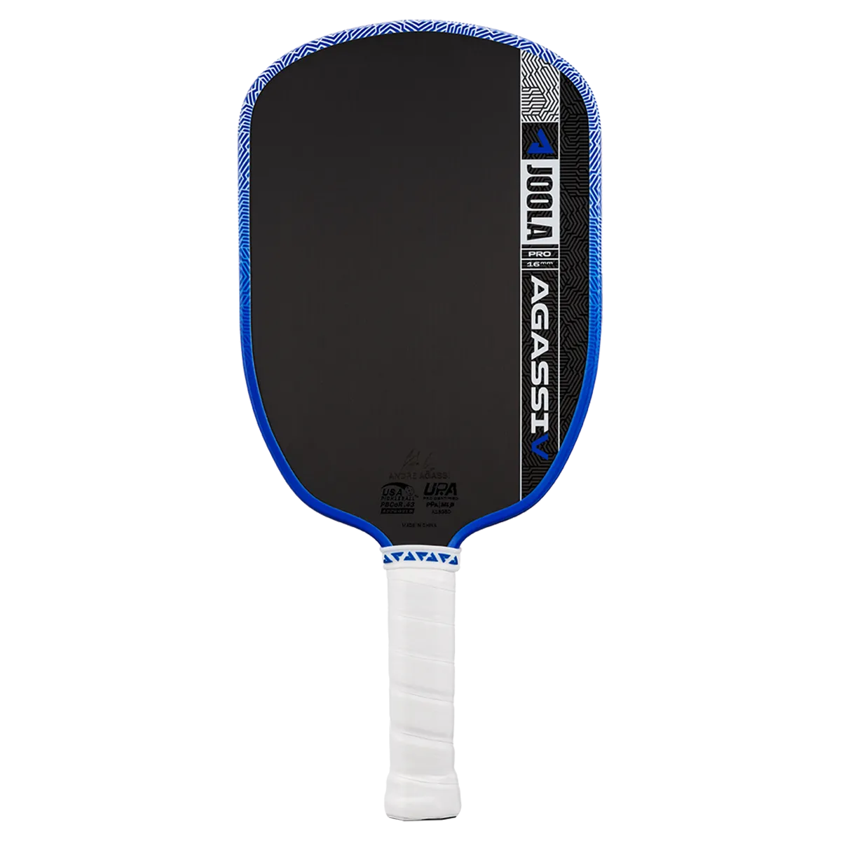 La JOOLA Agassi Pro V è una racchetta da pickleball con spessore da 16 mm, nucleo Propulsion Core e impugnatura White Feel-Tec, progettata con manico rastremato e area di impatto ampliata per un utilizzo su tutto il campo.