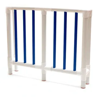La struttura viene fornita interamente montata ed è costituita da tubolari e giunzioni in PVC antiurto: lo spazio fra gli elementi verticali è inferiore a 10 cm. nel rispetto delle norme CEE e della norma UNI 10809 3.3.