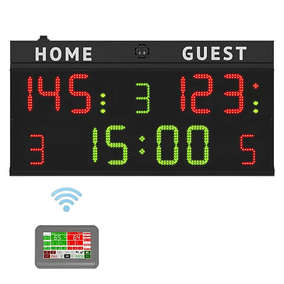 Visualizza in modo preciso e intuitivo punteggi, cronometro, falli, periodo, timeout e possesso palla, risultando perfetto per numerosi sport indoor come basket, volley, futsal e molte altre discipline. È dotato anche di visualizzazione oraria e avvisatore acustico da 120 dB, programmabile nella durata e intensità.
