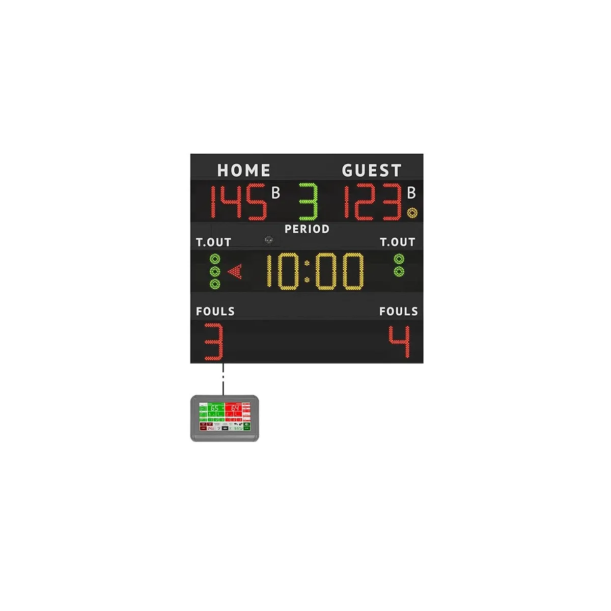 Modello top di gamma con visualizzazione di tutti i dati necessari per gli sport di squadra indoor: pallacanestro, calcio a 5, pallavolo, pallamano, ecc.
