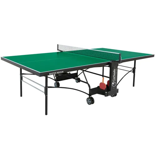 Questo tavolo per tennistavolo da interno è progettato per uso ricreativo intensivo e allenamento, con misure regolamentari da torneo pari a 274 x 152,5 x 76 cm. Il modello è pieghevole ed è disponibile con piano gioco blu o verde.